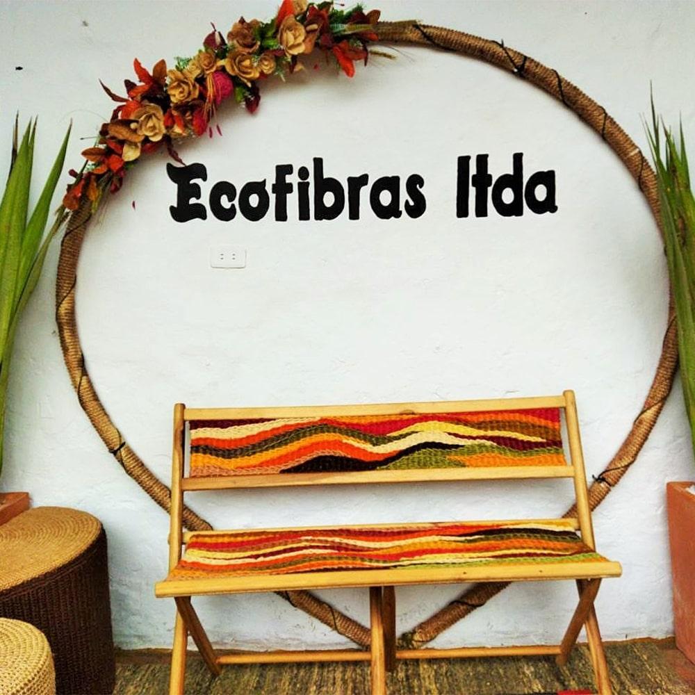 Double chair, made of fique fiber and yellow guayacan wood, all immunized. Handwoven on a loom mounted on the same wood. Designed to resist 160 kilos of weight.