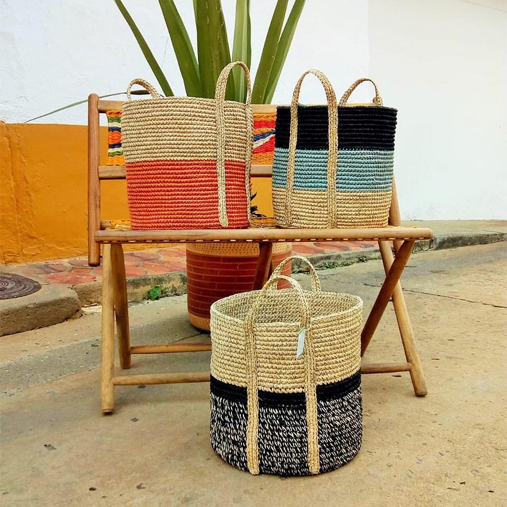 Ure container with winch, exclusive Ecofibras design. Made 100% fique fiber. This product is used as a lining for pots, organizers, towel racks, etc.